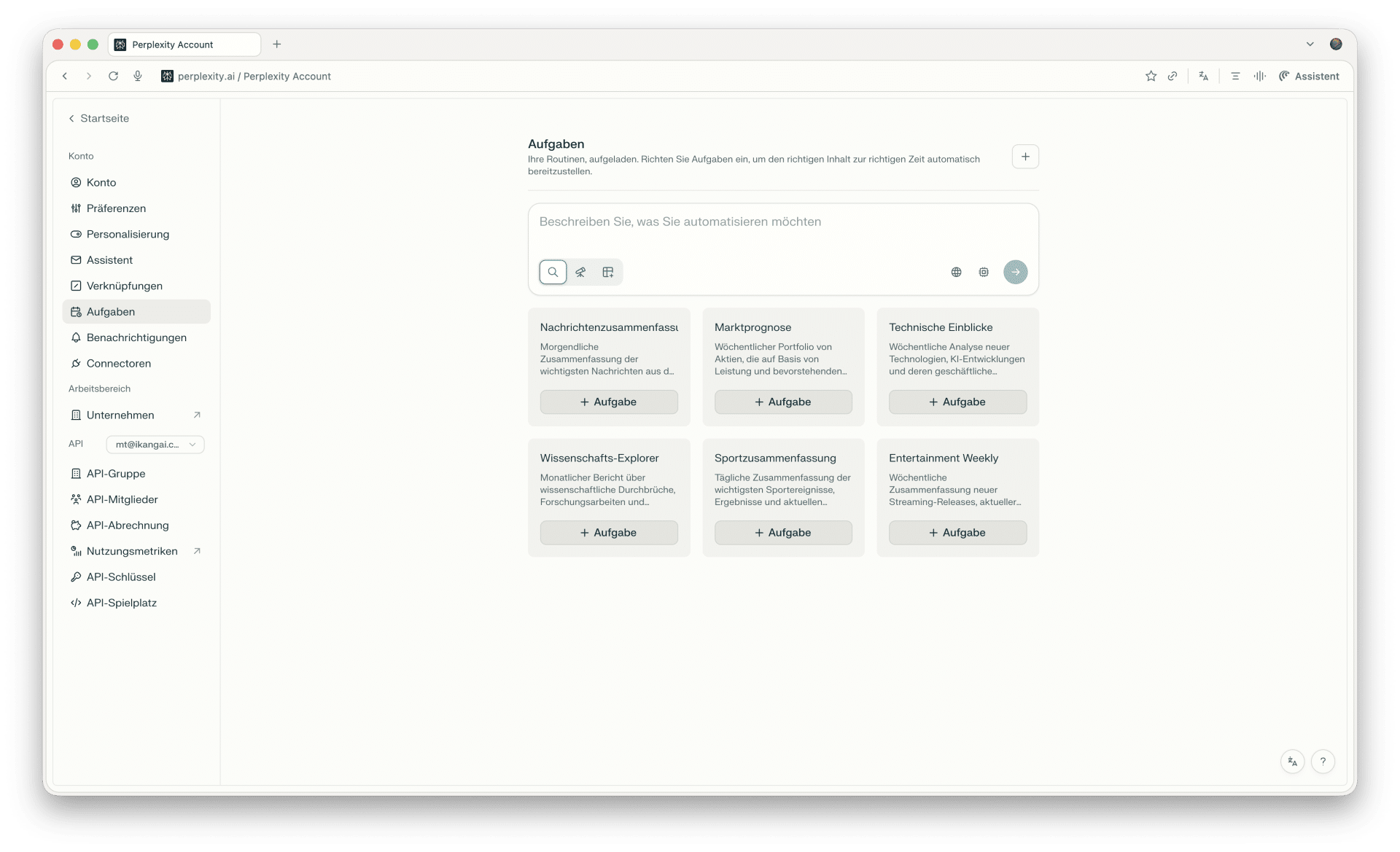 Gut zu wissen: ChatGPT bietet seit 2025 ein ähnliches Feature. Der Unterschied: Perplexity Tasks durchsucht bei jeder Ausführung das aktuelle Web und liefert Quellen mit. ChatGPT Tasks basiert primär auf dem Trainingswissen – für aktuelle Recherchen ist Perplexity hier im Vorteil.