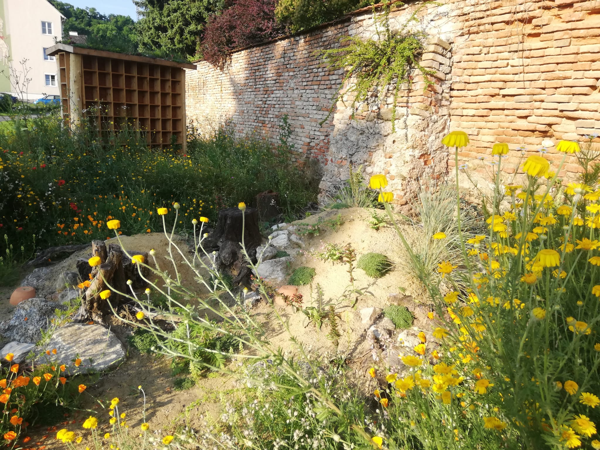 Von den etwa 700 in Österreich lebenden Wildbienenarten nutzt nur ein Teil solche „Hotels“. Etliche Arten nisten im Boden, auch für sie kann viel Gutes getan werden. In erster Linie ist das der Schutz ihrer Lebensräume: Sandflächen, Abbruchkanten, Magerrasen und viele mehr. Sind diese nicht vorhanden, kann ein sogenanntes Sandarium gebaut werden: Das ist im Wesentlichen ein Hügel oder ein Beet bestehend aus ungewaschenem Sand, das von Vegetation weitgehend freigehalten wird.
