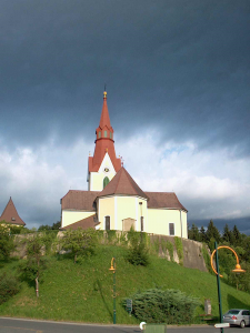 Die erhöhte Lage der Pfarrkirche deutet auf ihre ehemalige Funktion als Wehrkirche hin.