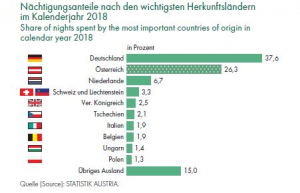 Von den pannonischen Steppen im Osten bis hin zu den idyllischen Alpenlandschaften im Westen bietet Österreich eine herrliche Urlaubsdestination nach der anderen. Ob Wandern in Tirol, Radeln im Burgenland, Baden in Kärnten oder den geschichtsträchtigen Ring in Wien entlangflanieren – hier ist für jeden Touristen-Geschmack etwas dabei. Die Ergebnisse von Statistik Austria in ihrer druckfrischen Broschüre „Tourismus in Zahlen 2018“ bestätigen: Der österreichische Tourismus geht (wort- und sprichwörtlich) bergauf.