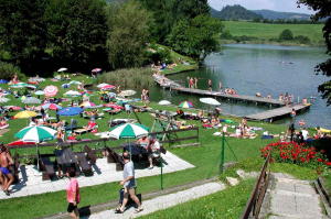 Der Kraiger See ist weitgehend unverbaut und naturbelassen. Obwohl das Bild den Badesee im Jahr 2000 zeigt, soll er sich auch weiterhin großer Beliebtheit erfreuen. ©Anton Wieser