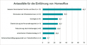 Home-Office sollte auf jeden Fall von allen Gemeindeverantwortlichen in die Überlegung neuer Arbeitszeiten und -formen einbezogen werden. Interessant ist in diesem Zusammenhang, dass die Amtsleiterinnen dem Thema aufgeschlossener gegenüber stehen als das männliche Gegenüber. Das könnte – vorsichtig gesagt und ohne echte Signifikanz – ein Indiz dafür sein, dass Frauen sich eher in die Problematik der Vereinbarkeit von Beruf und Familie hineinversetzen können.