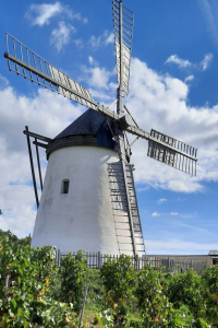 Die weit ins Land blickende Windmühle steht in imposanter Lage an der geologischen Grenze zwischen Wald- und Weinviertel inmitten der Retzer Weinberge am Kalvarienberg. Bild: Mühlenfreunde Österreich