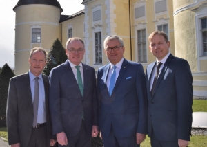 (v.l.) Direktor des Francisco-Josephinums und Nationalratsabgeordneter Alois Rosenberger, Landeshauptfrau-Stellvertreter Stephan Pernkopf, Gemeindebund-Präsident Bürgermeister Alfred Riedl und Generalsekretär im BMDW Michael Esterl.