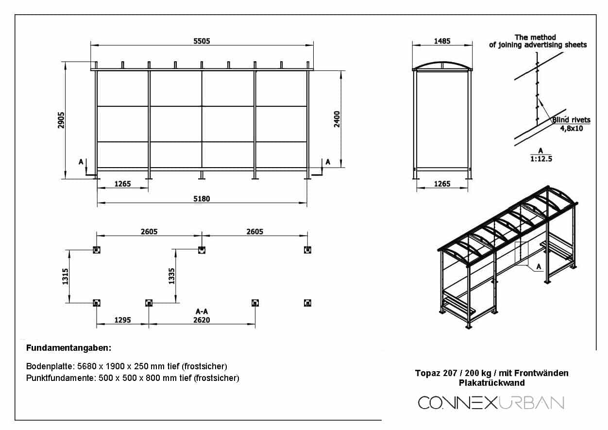 Connex Urban – Buswartehaus (Maße: 5950 x 1505 mm)
