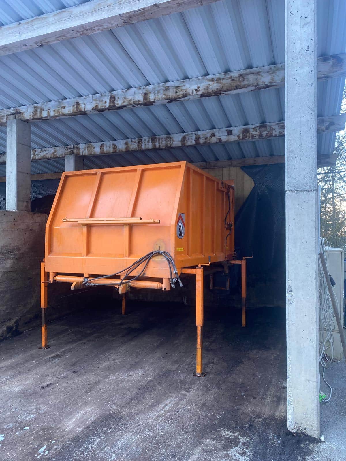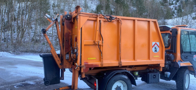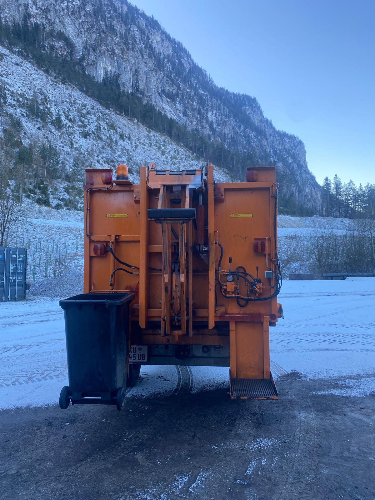 Nach rückwärts kippbar, Rückwand hydraulisch aufklappbar. An der Rückwand ist eine Hebevorrichtung mit Schwenkvorrichtung für Müllkübel, der Marke TERBERG, angebaut. 1 Trittbrett aufklappbar mit Handgriffen. 4 Abstellstützen.
