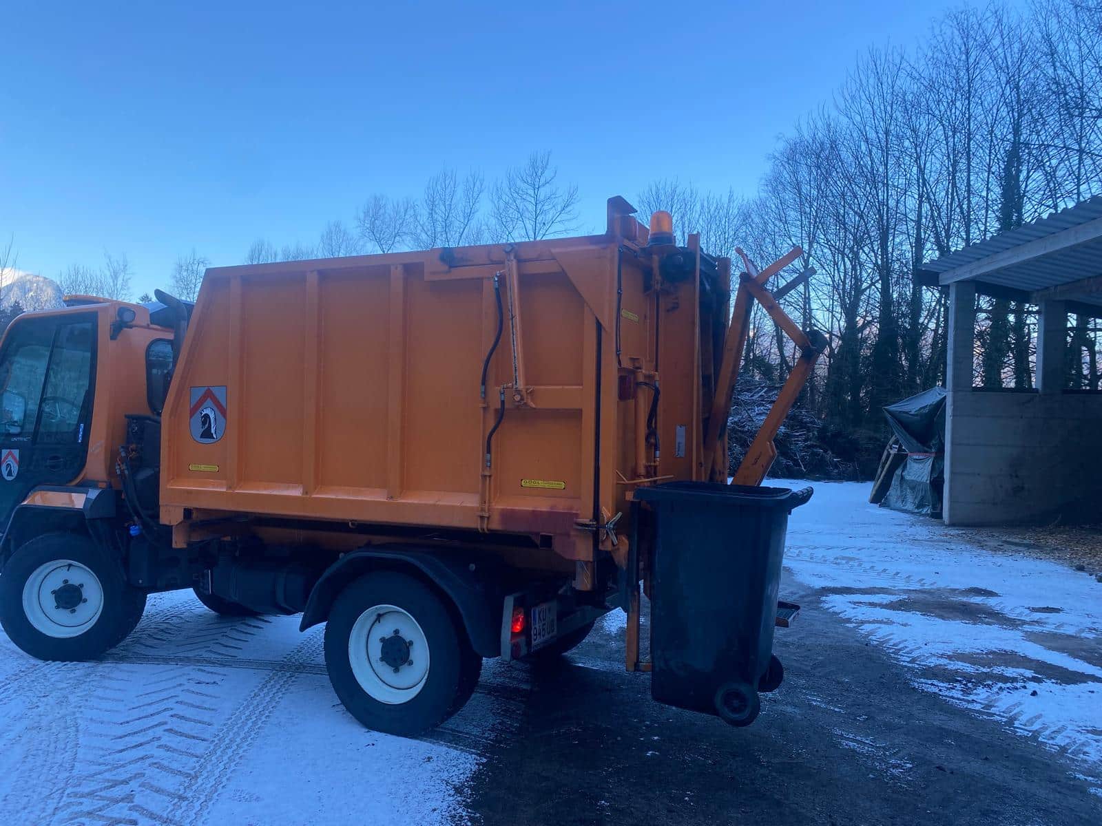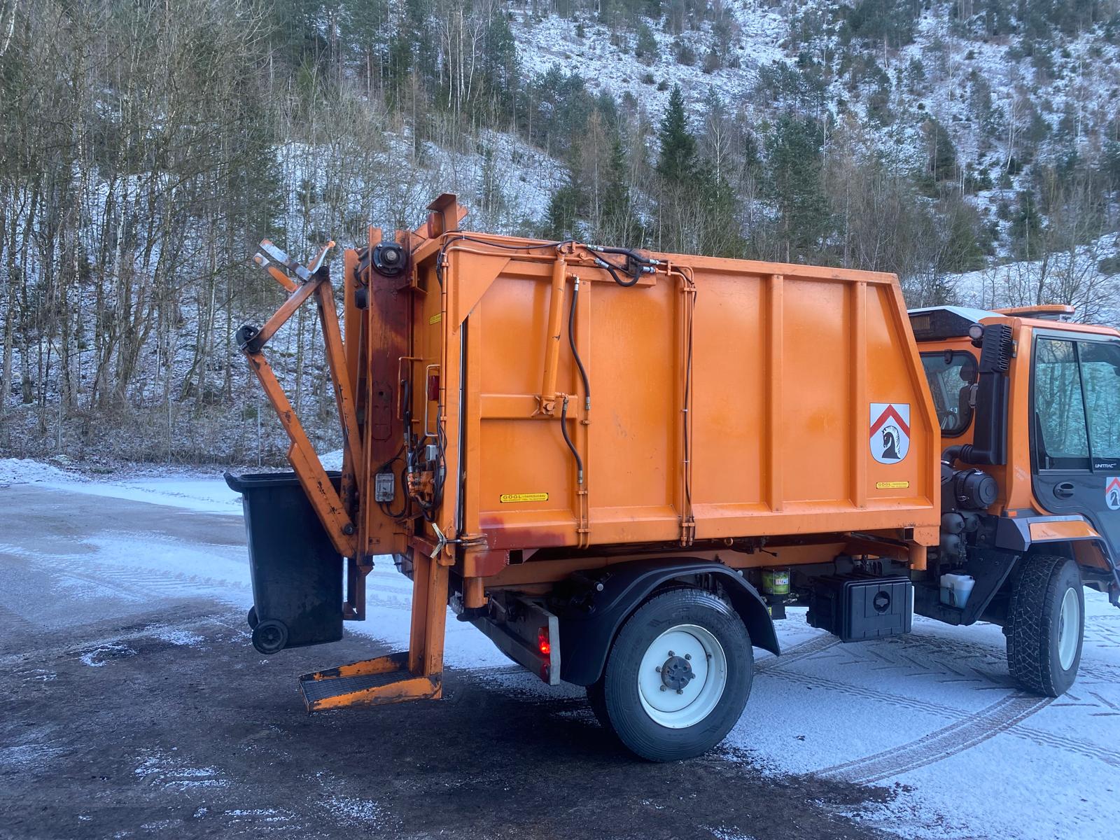Containeraufbau für Unitrac mit Hub-Kippvorrichtung für z.B. Mülltonnen.